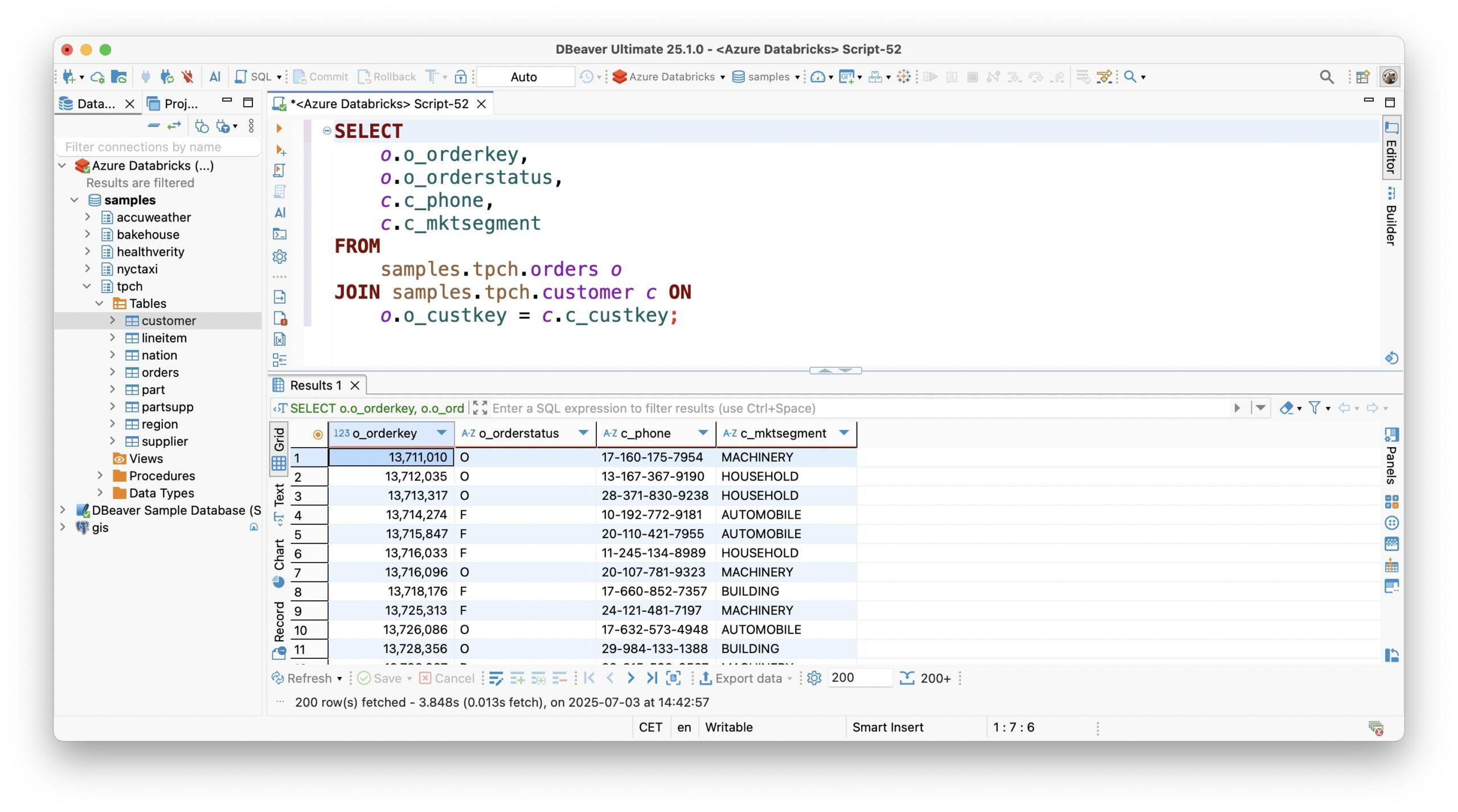 Once connected, you can use DBeaver features with your Databricks workspace.