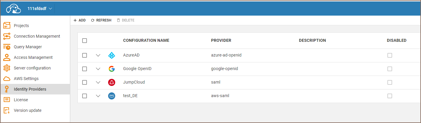 Below is the list of supported identity providers: