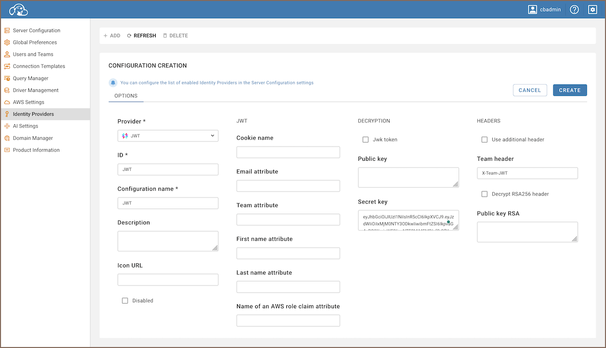 In CloudBeaver, you can use JWT (JSON Web Tokens) authentication to securely exchange claims between the client and the server. This method allows you to authenticate using JWTs, which the server validates to grant access to its resources. This article outlines the basic settings necessary for JWT authentication in CloudBeaver.