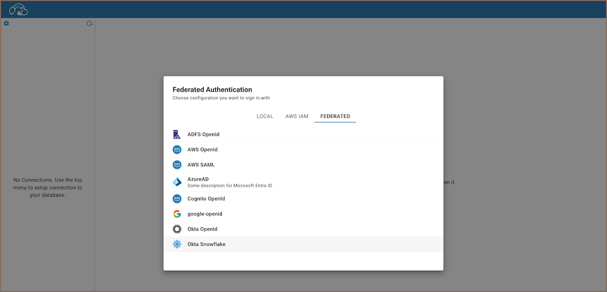 CloudBeaver allows for Snowflake connections through OpenID with Okta authentication. This guide details the process for establishing such connections. Please ensure you meet all the prerequisites outlined below before proceeding with the configuration steps.