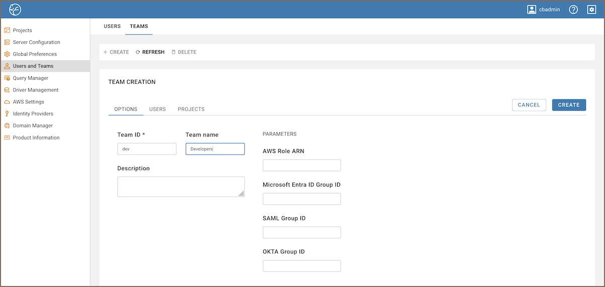 To create a new Team, follow these steps: