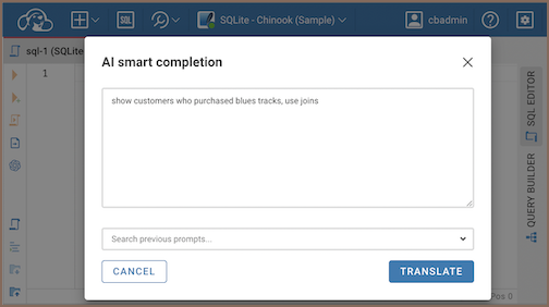- Click Translate to get the SQL query.