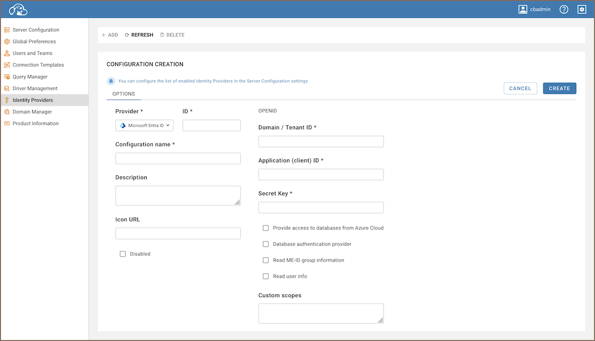 Configure application secrets CloudBeaver uses the OpenID Connect protocol for authorization with Microsoft Entra ID. To enable this, configure application secrets. Detailed instructions are available in the official Microsoft documentation.