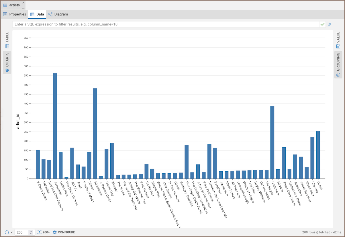 The default grid view of query results may look unremarkable. Use CloudBeaver's Charts feature to transform your