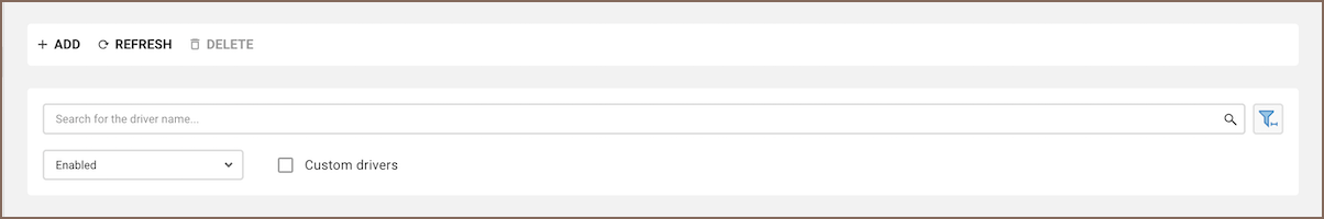 Instead of deleting a driver, you can disable it in the Server Configuration tab. For more details, see Server configuration administration.