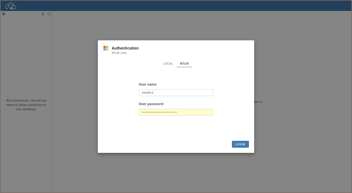 With the NTLM configuration now established, proceed to the login screen.