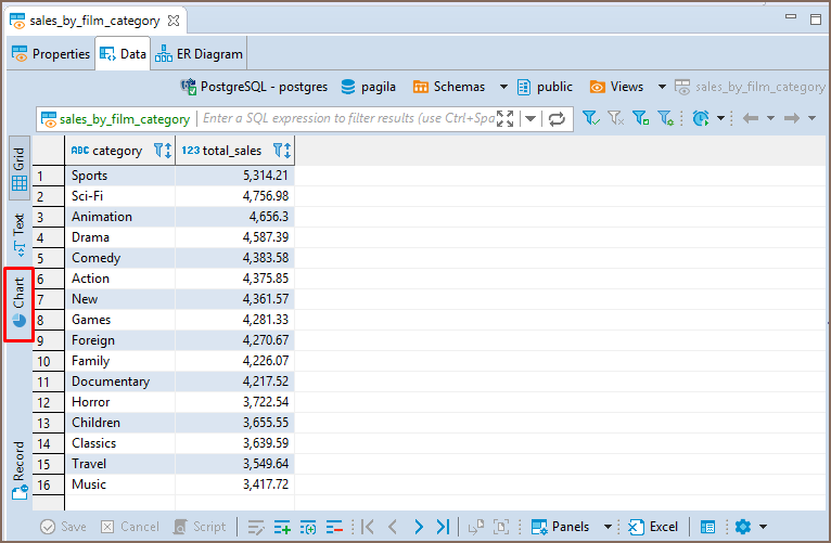 Note: Analytical Charts are only present in the DBeaver Enterprise Edition