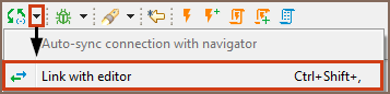 The reverse action is also possible: you can set the focus of the Database Navigator to the active connection of the SQL Editor - press Ctrl+Shift+, or click the arrow next to the Set connection from navigator button in DBeaver`s main toolbar and then click Link with editor: