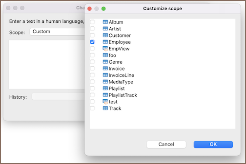 You can also select database objects to work with in the Scope field. This is useful if you have a large schema with many objects.