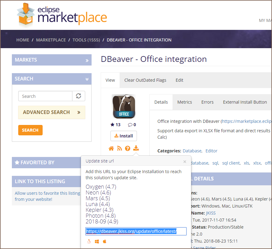 You can install a lot of optional extensions (plugins.md) in DBeaver. Most of the extensions can be found on the Eclipse Marketplace website.