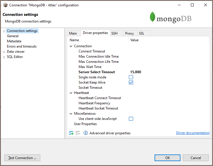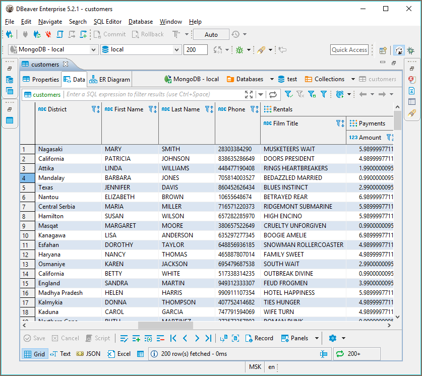 DBeaver EE supports MongoDB schema browser, data viewer, SQL and JavaScript queries execution. It also supports various administrative tools (like server sessions manager). DBeaver uses MongoDB Java driver 3.8.0 to operate with a server. It supports MongoDB servers from 2.x to 4.x.
