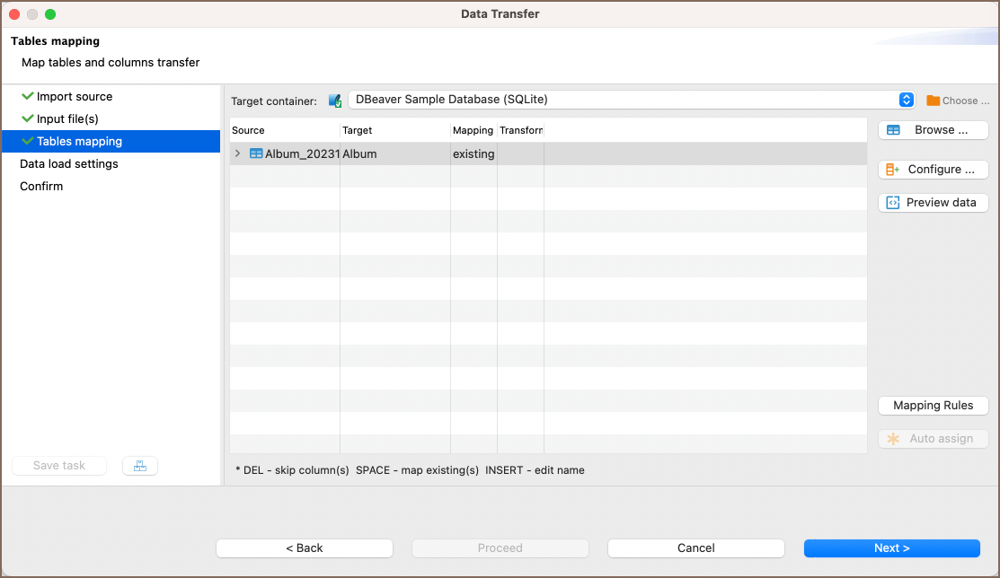 When importing from Excel files, DBeaver provides additional features to enhance your data transfer experience: