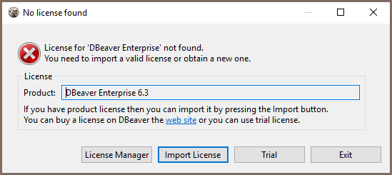 Commercial versions of DBeaver ask the user to import the license file if they cannot find it locally. It is the most simple and convenient way to import the product license for individual users.