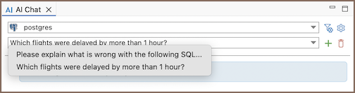To use a specific connection in AI Chat, select the connection from the toolbar at the top of the chat panel. The selected connection defines which database the AI will use when generating SQL queries.