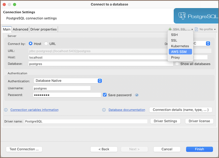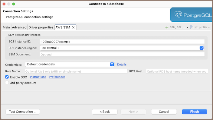 In some scenarios, you may need to interact with AWS resources through Systems Manager (SSM) to manage and automate operations. DBeaver offers a way to configure AWS SSM settings to facilitate this.