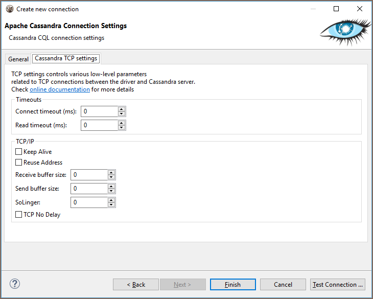You can connect directly to a server or use SSH tunneling or SOCKS proxy. DBeaver uses the DataStax Java driver to operate with a server. It supports Cassandra servers 2.x, 3.x or higher.