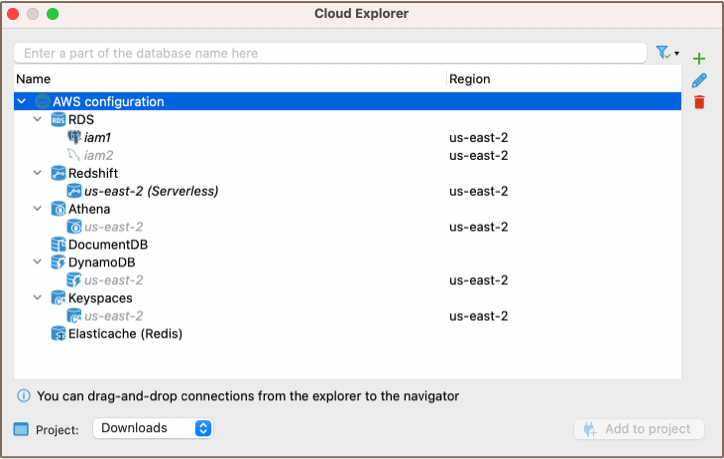 With Cloud Explorer, you can set up your cloud access once and then easily browse, connect, and manage your cloud databases. It saves you from manually configuring each database connection, as it reads all database endpoint information directly from the cloud provider.