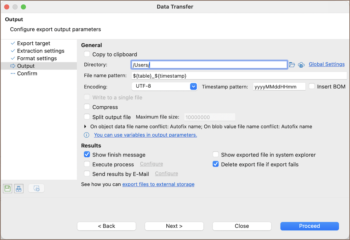 DBeaver supports data export to external and remote storage, configured in the data transfer wizard.
