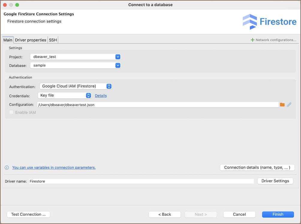 In this subsection, we will outline the settings for establishing a direct connection to a Firestore database using DBeaver. Correctly configuring your connection ensures seamless interaction between DBeaver and your Firestore database.