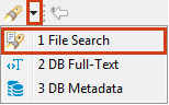 To search file contents for a string, click the Search button on the main toolbar or the arrow next to the Search button and then File Search on the dropdown menu: