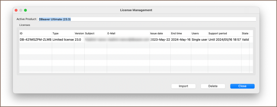 Therefore, you need to import your license key from your personal account on our site https://dbeaver.com/signin/.