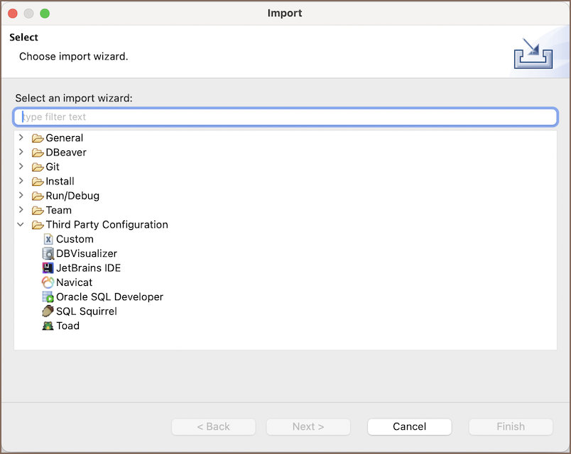 DBeaver provides the capability to import your connection settings from several commercial tools, making it easy to switch whether you are working simultaneously with multiple tools or planning a full move to DBeaver.