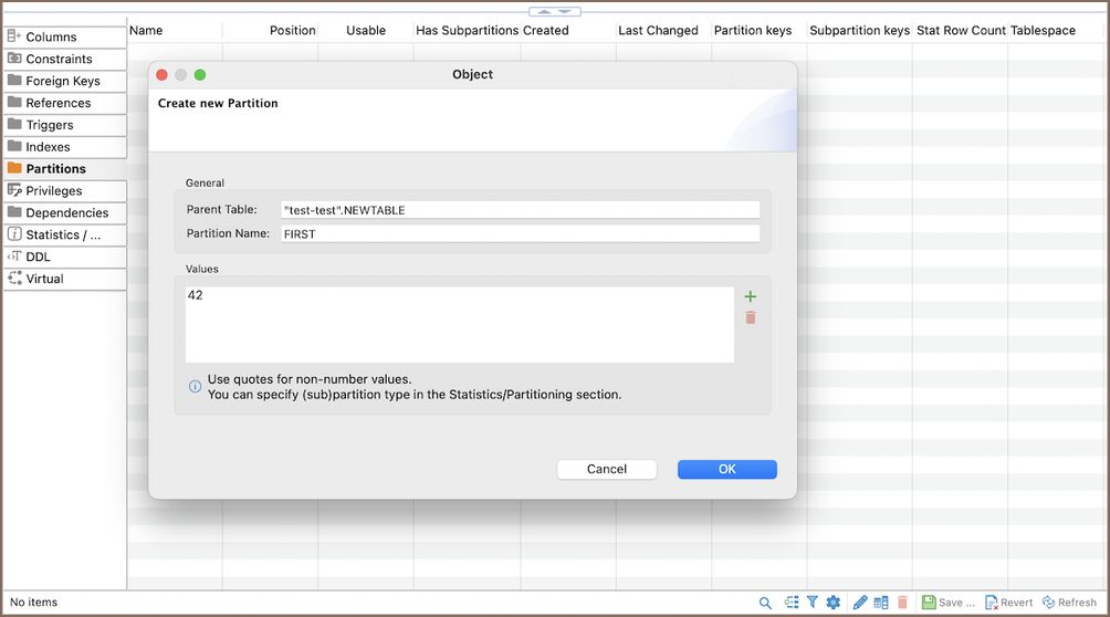 Once you have configured the Partition properties, saving these changes to the database is essential. Until you commit your modifications, the new Partition will only exist within DBeaver and will not be added to the actual database table. Here are three options for committing the changes: