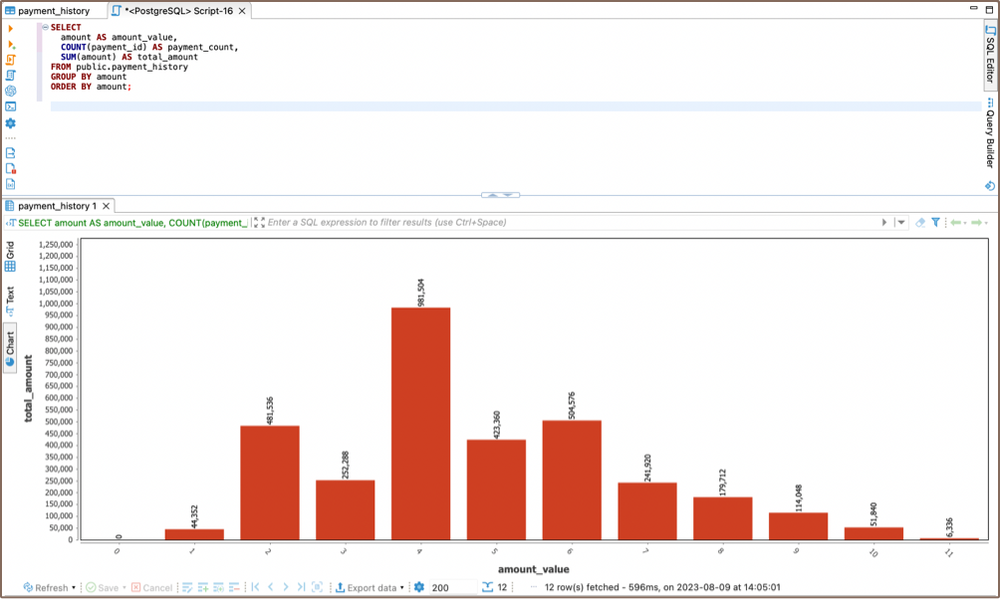 The default grid view of query results may look unremarkable. Use DBeaver's Charts feature to transform your SELECT