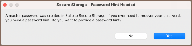 When prompted, select Yes to provide a password hint after creating a Master password.