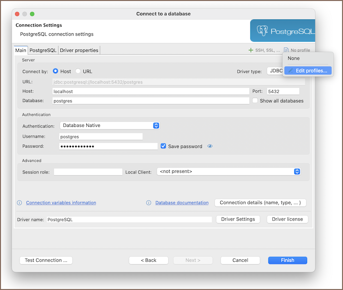 - Start creating a new connection