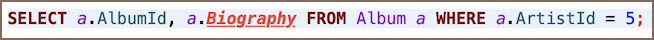 For example, if a script attempts to query a nonexistent column Biography as shown below, it will be highlighted