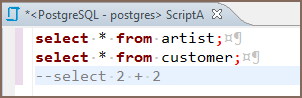 To comment out an SQL line, press Ctrl+/ or right-click the line and click Format -> Toggle Line Comment on the context menu. To uncomment a commented line, manually remove the commenting syntax, or press the same button combination, or right-click the line and click the same item on the context menu.