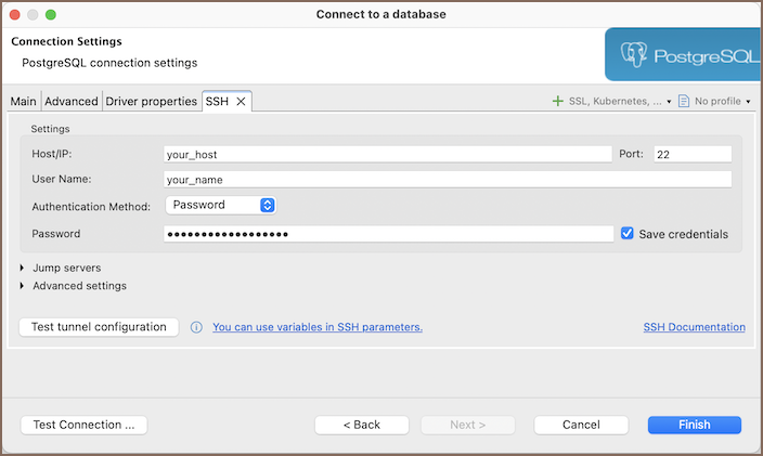 Sometimes the database cannot be accessed directly, in such cases you can use the SSH tunnel. The SSH or Secure Shell is a network communication protocol that allows two computers to communicate and encrypts the shared data.