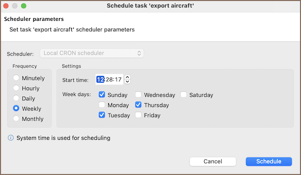To view the cron entries used for task scheduling, right-click a task and select Scheduler → Open scheduler settings.