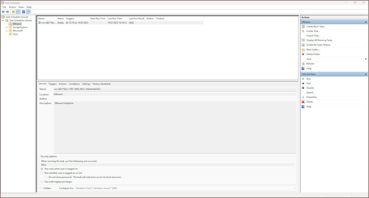 DBeaver stores all scheduled tasks in a folder named DBeaver.
