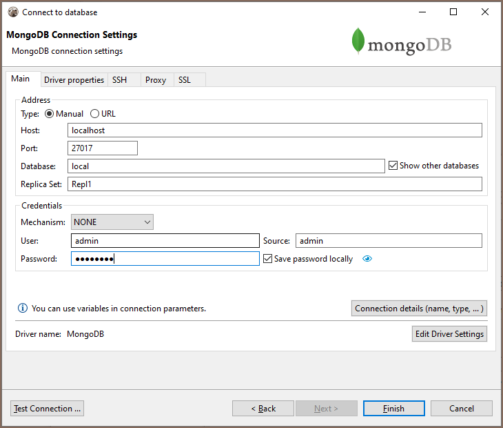 DBeaver EE supports MongoDB schema browser, data viewer, SQL and JavaScript queries execution. Also it supports various administrative tools (like server sessions manager). DBeaver uses MongoDB Java driver 3.8.0 to operate with server. It supports MongoDB servers from 2.x to 4.x.