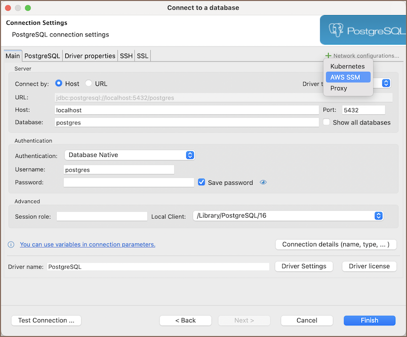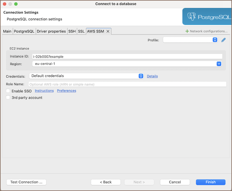 Add a Network Handler for AWS SSM. To do this, click on the Network configurations... button and select AWS SSM tab.
