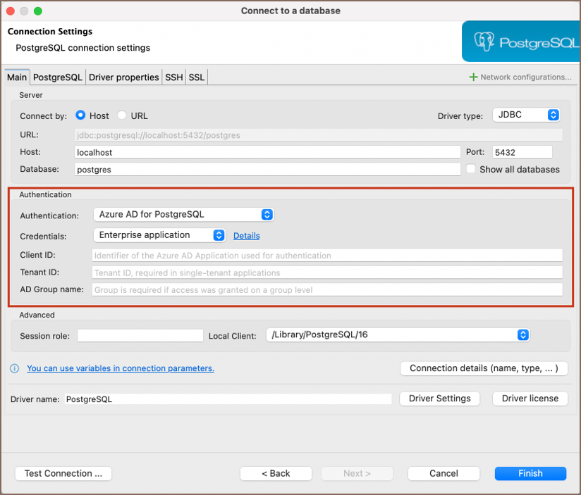 If you belong to an Azure Entra ID Group, you must add the AD Group name to your Connection configuration. This step, possibly requiring admin assistance, involves right-clicking on your database in the Database Navigator and selecting Edit Connection. In the ensuing dialog, navigate to the Connection Settings tab and input your AD Group name in the designated field.