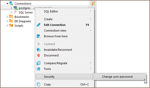 - Open the context menu by right-clicking on the connection in the Navigation tree.