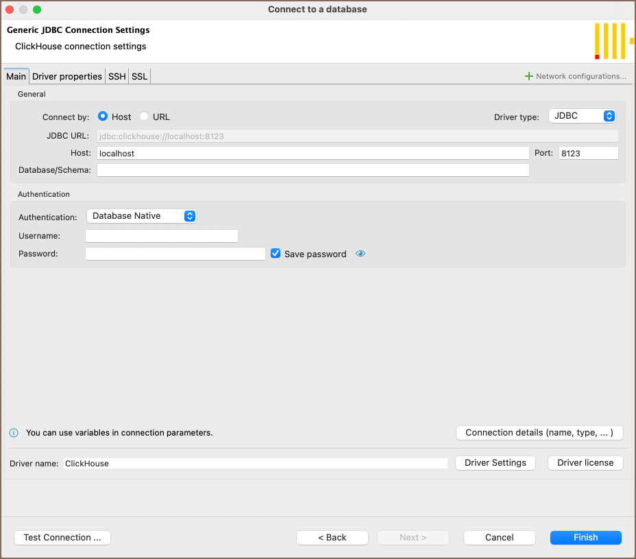 | Driver Type | Select the appropriate driver for your ClickHouse database. |