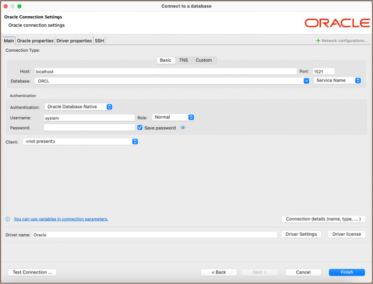 | Service/SID | It depends on the server configuration. SID must be selected for some servers and the Service Name for others |