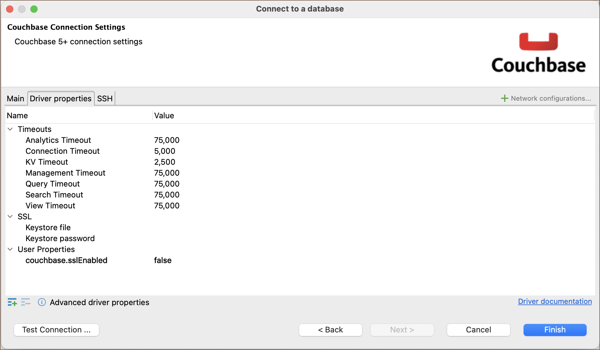 Couchbase driver properties