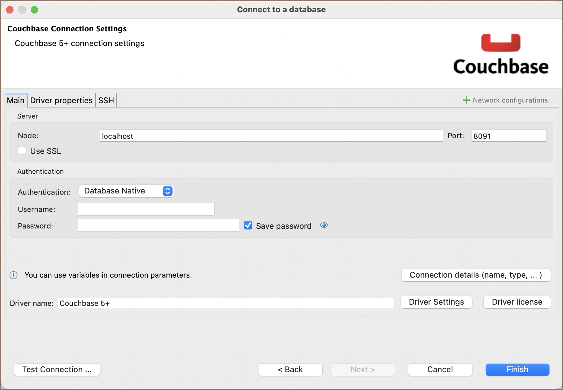 driver must be selected: use Couchbase for versions 4.x and earlier, and Couchbase 5+ for version 5