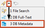 To search for database metadata, click the arrow next to the Search button in the main toolbar and then click DB Metadata Search on the dropdown menu: