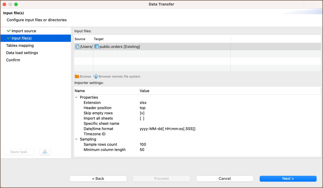 - In the final window, you can review all the settings you selected earlier. If you missed something, you could go Back and fix it. When you are ready, finish the import by clicking Proceed.