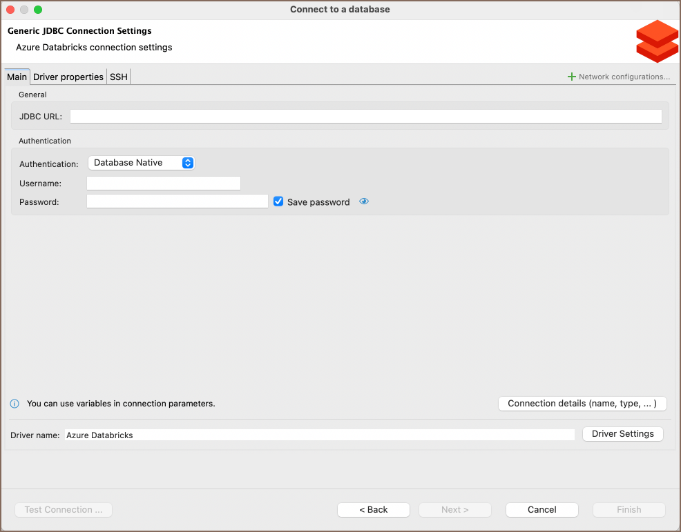 Databricks connection settings