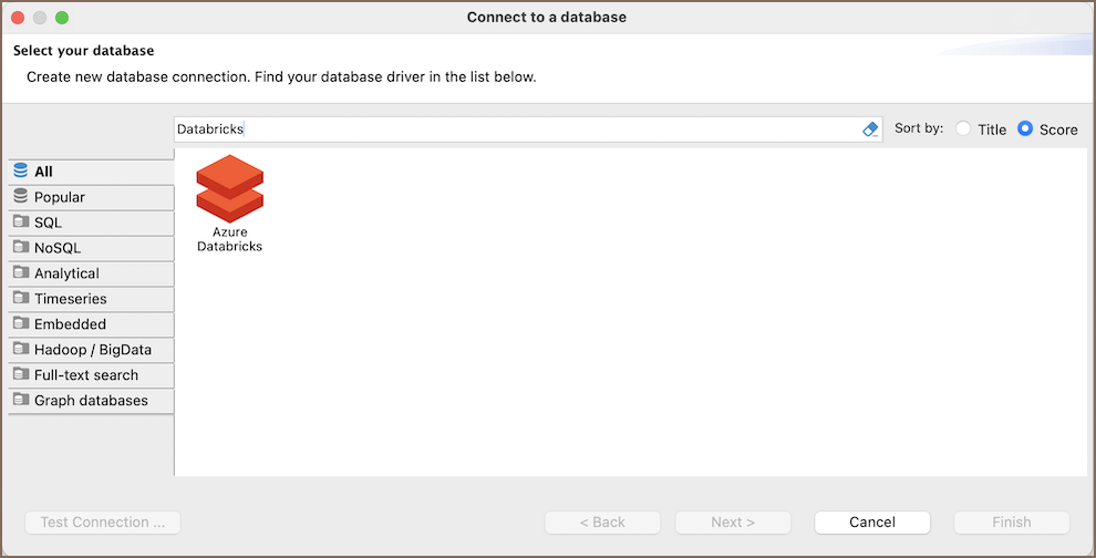 selecting the Databricks option to connect to the Databricks database. If you have not yet created a