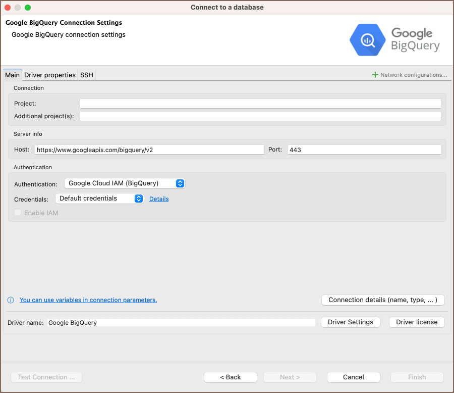 BigQuery connection settings