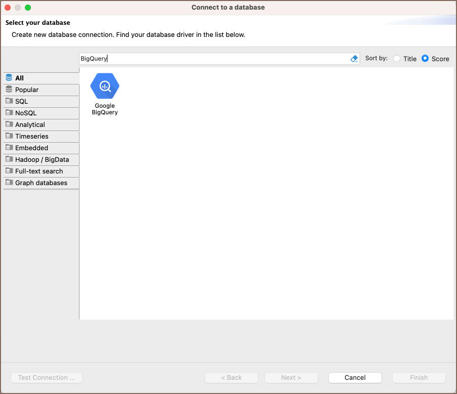selecting the BigQuery option to connect to the BigQuery. If you have not yet created a