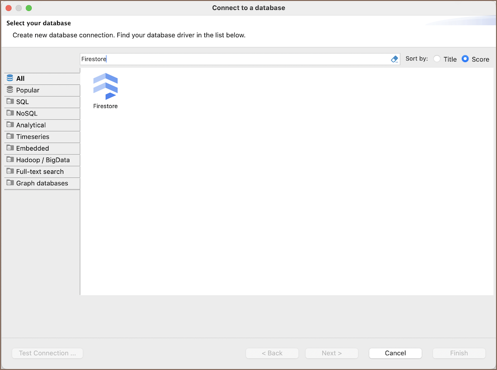 selecting the Firestore option to connect to the Firestore database. If you have not yet created a